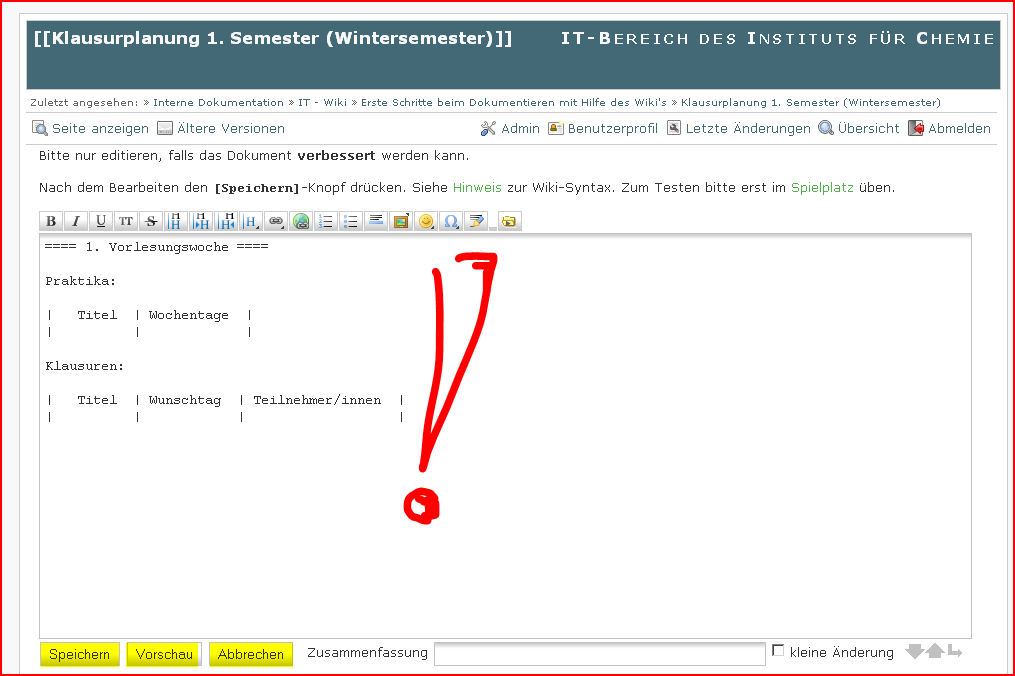 Erste Schritte beim Dokumentieren mit Hilfe des Wikis